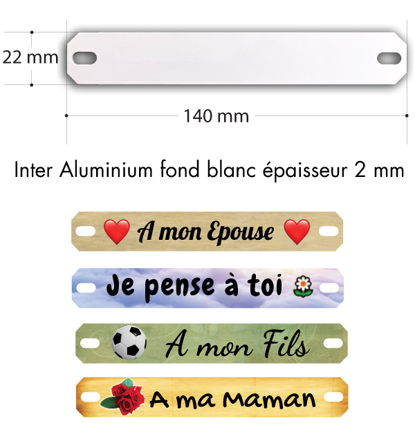 Inter Aluminium fond blanc épaisseur 2 mm 140 x 22 mm Prêt pour la sublimation