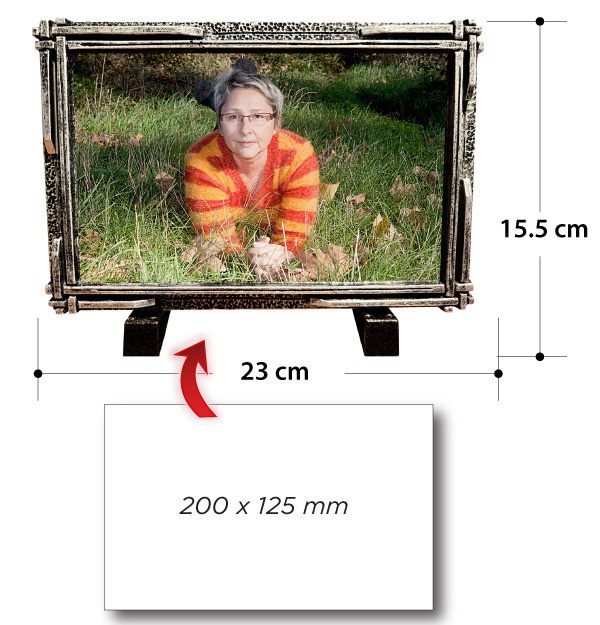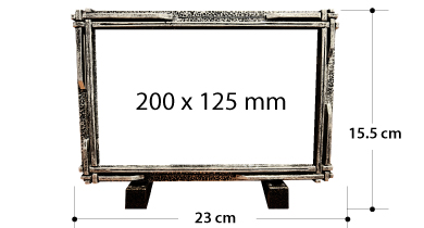 Cadre sur pied argent 230 x 155 mm + plaque alu fond blanc 200 x 125 mm